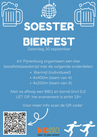 • Er is de mogelijkheid om de bierestafette met alcoholvrij bier te doen in plaats van met alcohol.
