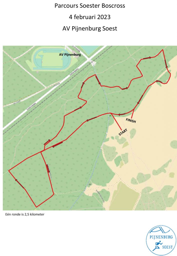 Op zaterdag 4 februari organiseert AV Pijnenburg de Soester Boscross. We hebben hiervoor een uitdagend parcours van 2,5 kilometer uitgezet door de Soester duinen en omringende bospaden. De ronde mag je naar keuze 1, 2, 3 of 4 keer lopen. Na 40 minuten sluit de doorkomst voor een volgende ronde. Voor de eerste drie finishers bij de mannen en vrouwen op de 10 kilometer (4 ronden) zijn er prijzen. De inschrijving is open voor iedereen. Je hoeft geen lid te zijn van een atletiekvereniging.