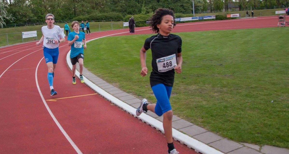 Op de 1000 m “haast” D-junior Yuri Stolk (nr 488) zijn clubgenoot Master 55+ Roger Hochstenbach (nr 294) naar een clubrecord.